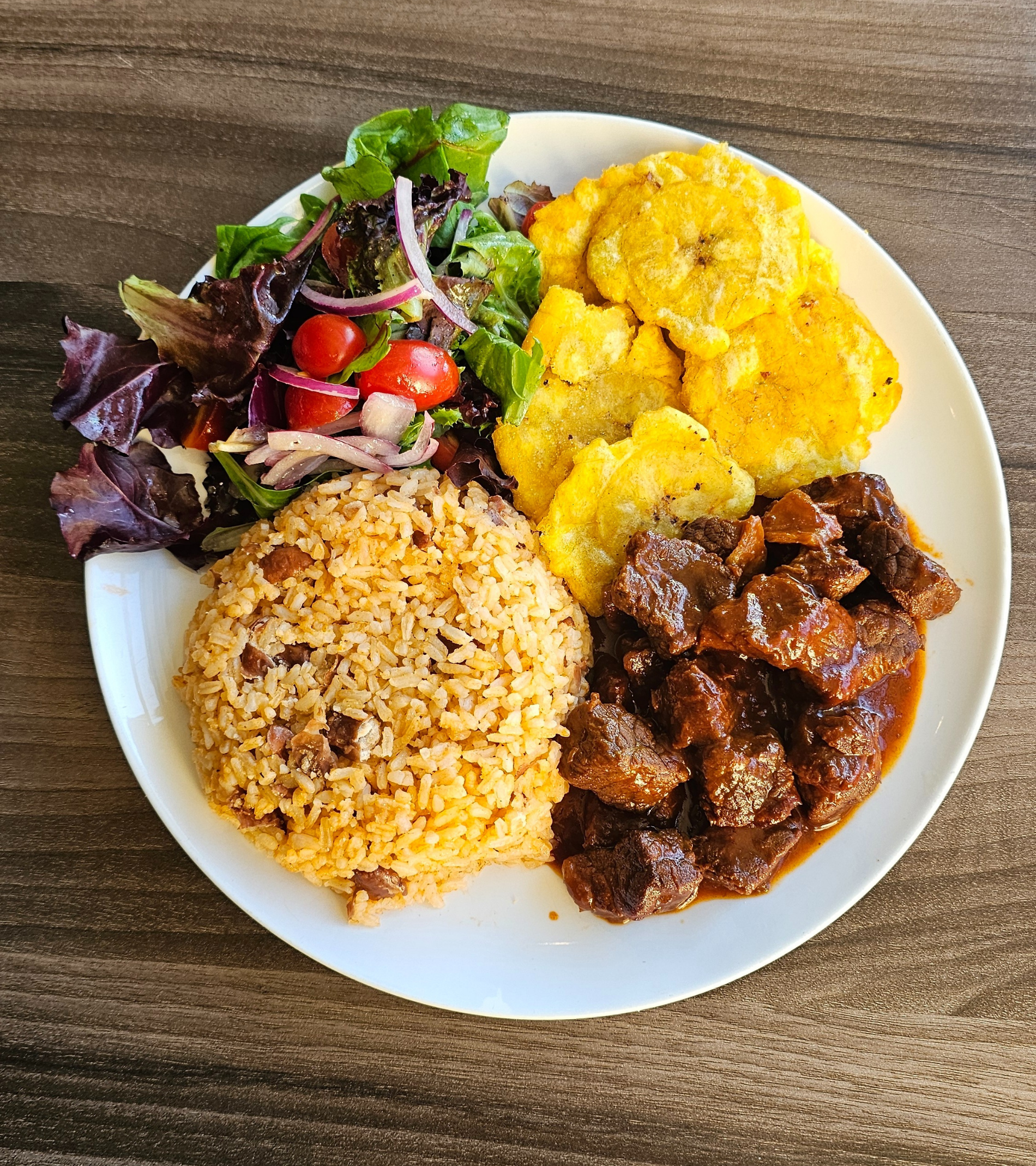 Tender, slow-cooked beef, Served with Moro de Habichuela, Tostones and a Garden Salad. Carne de Res Guisada $23.00 Reserve ORDER DELIVERY